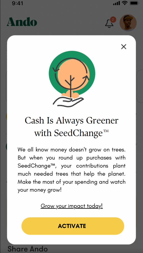Ando Money aims to revolutionize banking by driving sustainable and positive impact with every dollar.